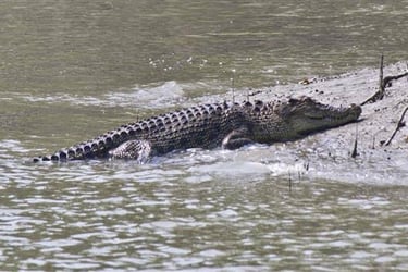 Estuarine Crocodile: These reptiles are commonly found in the muddy waters of the Sundarbans, often basking on riverbanks.